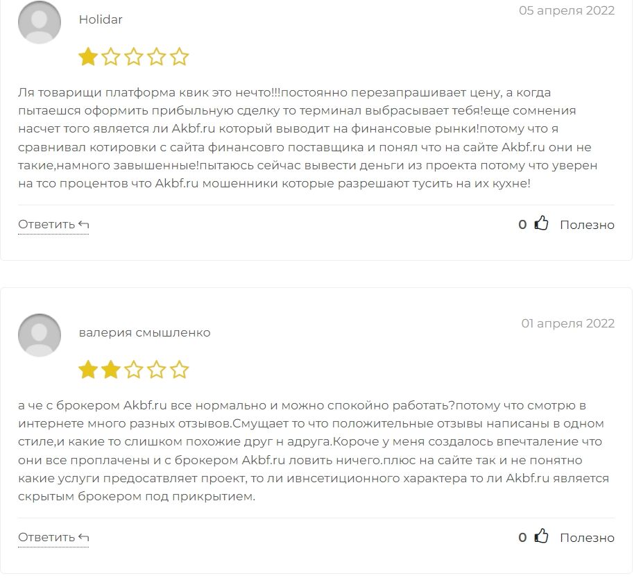 Отзывы клиентов — один из основных критериев, влияющих на расположение брокера в рейтинге лучших компаний. Увидеть все отзывы об АКБФ Вы можете на странице профиля компании.
