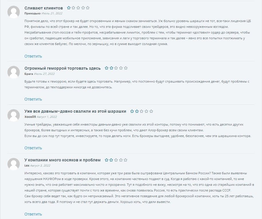 Люди говорят: все трейдеры с мозгами давно покинули «Алор». Ушли к тем, кто предлагает условия получше, не крадет деньги.