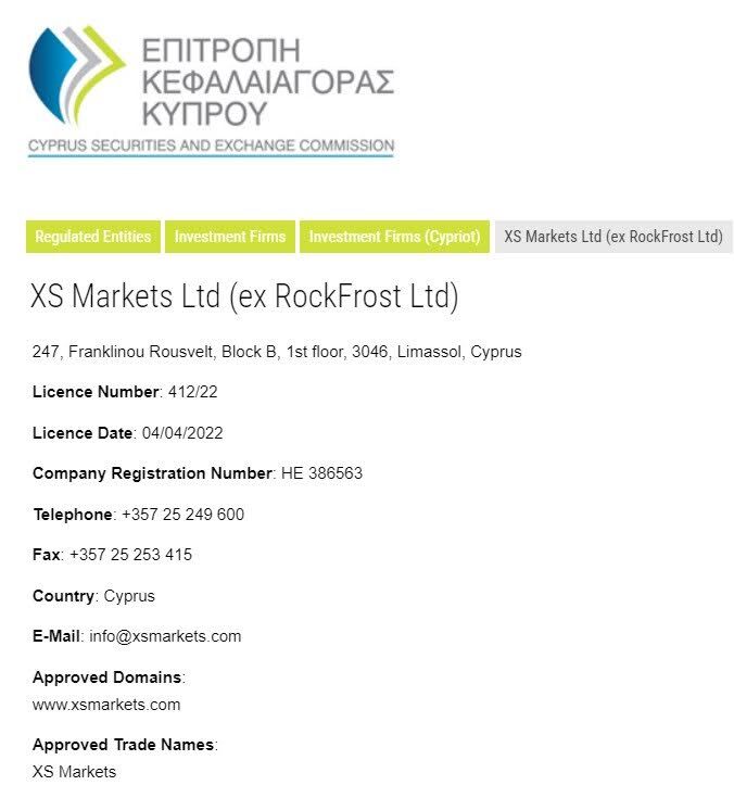 Номер 412/22 принадлежит всамделишной компании — XS Markets Ltd. Герой нашего обзора не имеет к ней никакого отношения.