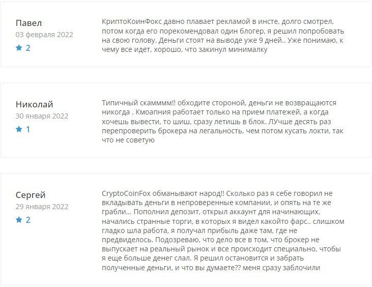 Отзывы клиентов — один из основных критериев, влияющих на расположение брокера в рейтинге лучших компаний. Увидеть все отзывы о CryptoCoinFox Вы можете на официальном сайте компании.