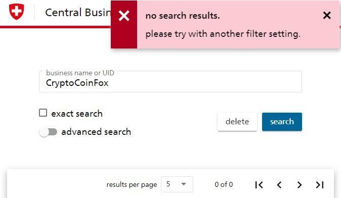 CryptoCoinFox утверждает, что зарегистрирован в Швейцарии. Даже дает адрес. Только он фиктивный. Там никогда не было офиса шарашкиной конторы.