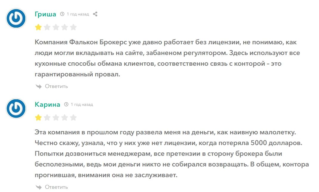 Перечисленные факторы наглядно показывают, почему стоит отказаться от услуг Falcon Brokers обзор жалоб подтверждает нецелесообразность торговли на площадке рассматриваемой компании.