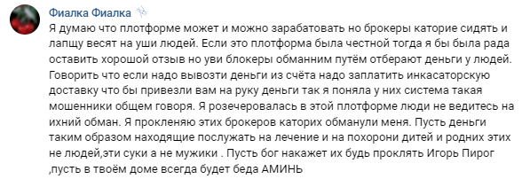 Этот клиент доволен сервисом, а из его недостатков отмечает отсутствие опции моментального вывода средств, однако в реальности за эту функцию отвечает брокер.
