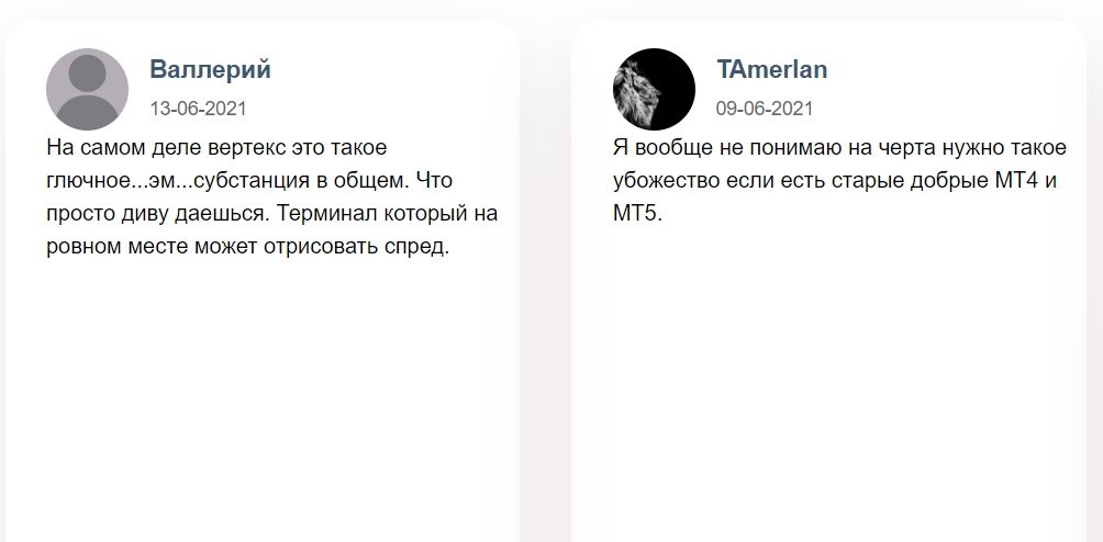 Пользователи вполне заслуженно критикуют VertexFX отзывы посвящены практически всем аспектам трейдинга. Руководство никак не реагирует на жалобы, предпочитая отмалчиваться. Такое поведение точно нехарактерно авторитетным компаниям, заинтересованным в оптимизации программного продукта.