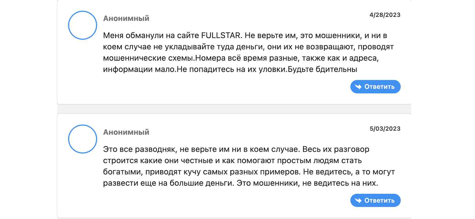 Место брокера Fullstar в черном списке — отзывы бывших клиентов, обзор мошенничества на финансовых рынках