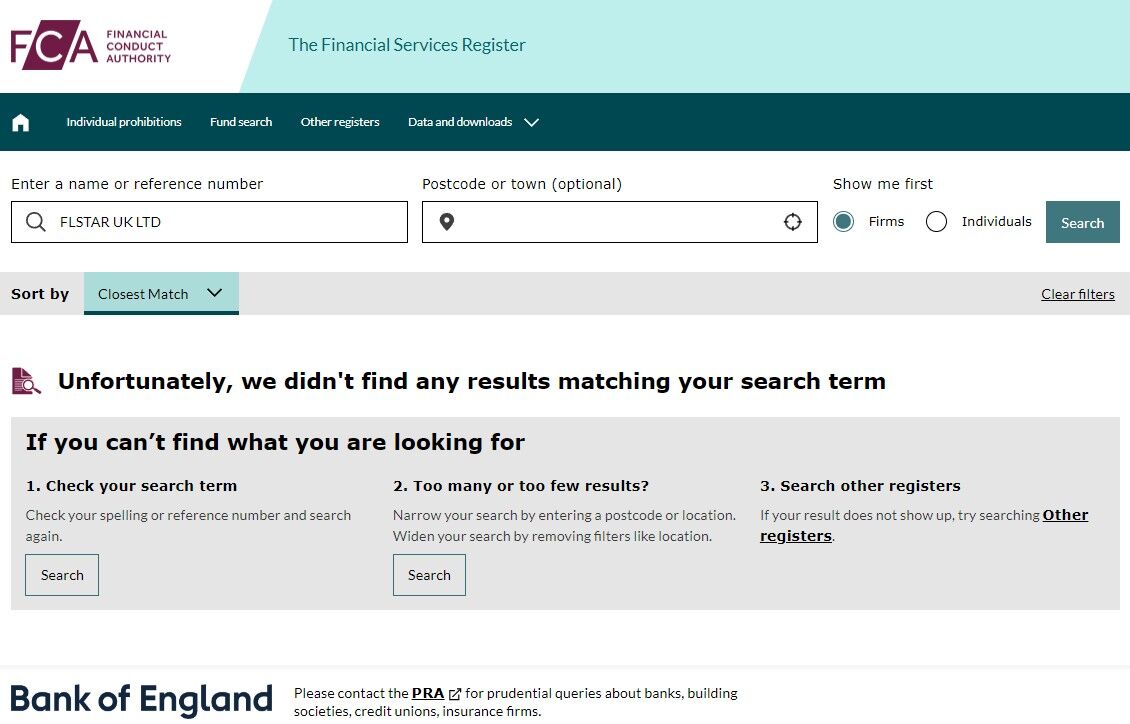 Чтобы быть брокером в Великобритании, недостаточно иметь только регистрацию. Нужна лицензия FCA. Она может подтвердить реальность форекс-брокера. Только британский регулятор не знает о существовании компании FLSTAR UK LTD.