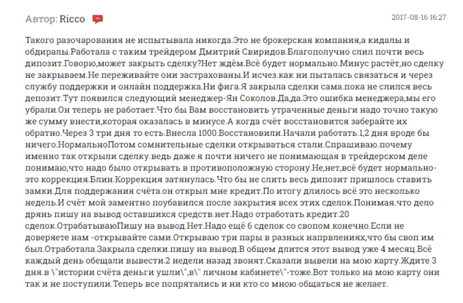Привет! Свои деньги я слил за 2 недели. Весьма быстро и оперативно. Конечно же менеджеры сказали что я сам виноват, но другого от них ожидать не стоило. В конечном счете привет чарджбэк. Поскольку по другому я просто не знаю как вернуть свои средства