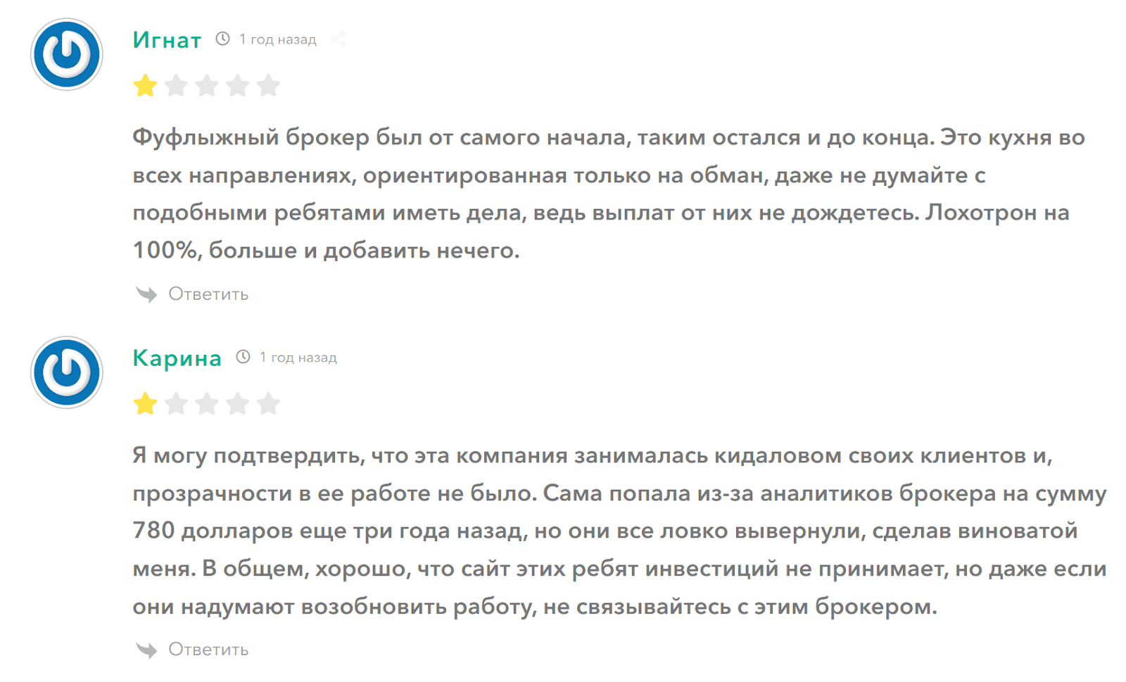 Мы столкнулись с тем, что комментариев в сети не так и много. В целом упоминаний об организации скудно, что конечно же усложняет оценку и анализ проекта. Кроме этого, такое незначительное число отзывов показатель, что реальный возраст брокера намного меньше, чем заявлено согласно легенде.