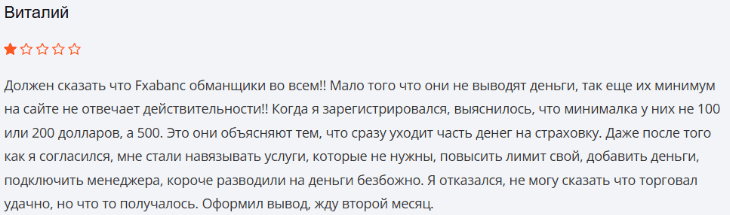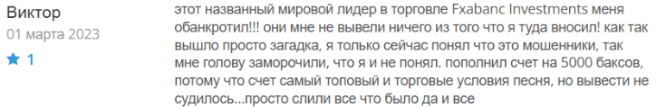 Мы рассмотрели все Fxabanc отзывы брокера и практически все они негативные. Смотрите ниже несколько примеров.