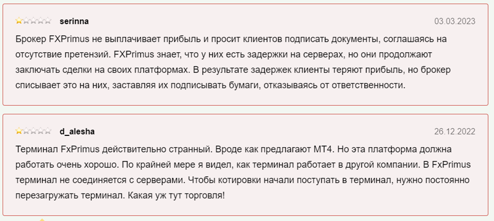 - проблемы с выводом средств. Существуют жалобы клиентов на то, что FXPrimus отказывается выводить средства и блокирует счета, при этом не реагируя на запросы через службу поддержки.