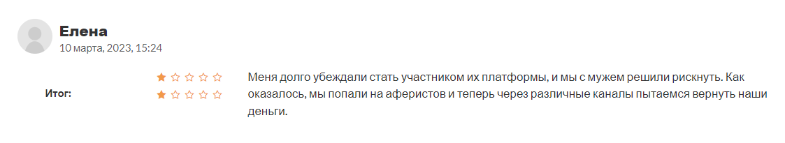 Даже если очень постараться, то на этой торговой платформе невозможно найти ничего позитивного. Это самый натуральный обман, рассчитанный на неопытных инвесторов. От таких ресурсов нужно держаться в стороне, потому что сотрудничество с ними – гарантированная потеря денег.