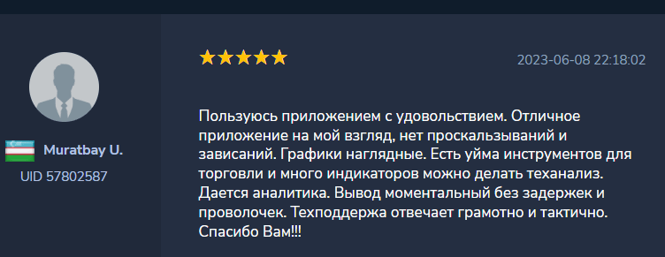 Эти комментарии подчеркивают некоторые сильные стороны компании. Клиенты отмечают удобство, наличие широкого набора инструментов для торговли, отсутствие задержек и проблем с выводом средств. Они также высоко оценивают качество поддержки, которая отвечает на вопросы грамотно и тактично.