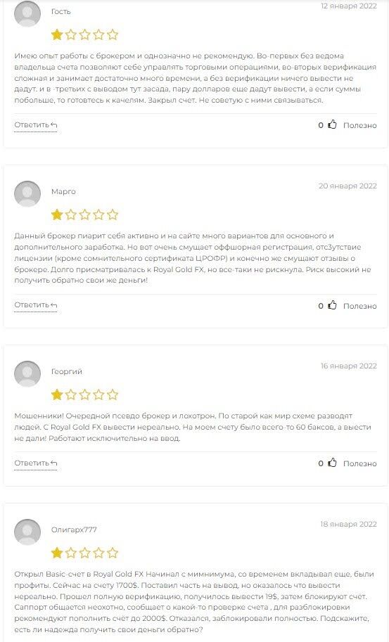 Отзывы клиентов — один из основных критериев, влияющих на расположение брокера в рейтинге лучших компаний. Увидеть все отзывы о Royal Gold FX Вы можете на официальном сайте компании.