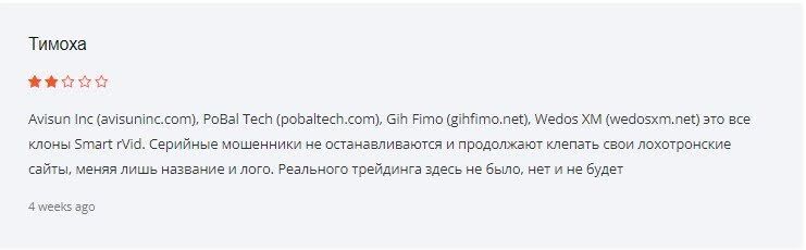 Smart rVid — ненастоящий брокер. Его сайт даже 12 месяцев не продержался на плаву. Стоящие за ним мошенники забросили его после первых негативных отзывов и сменили на другой, чтобы выкачивать бобы по старой схеме.