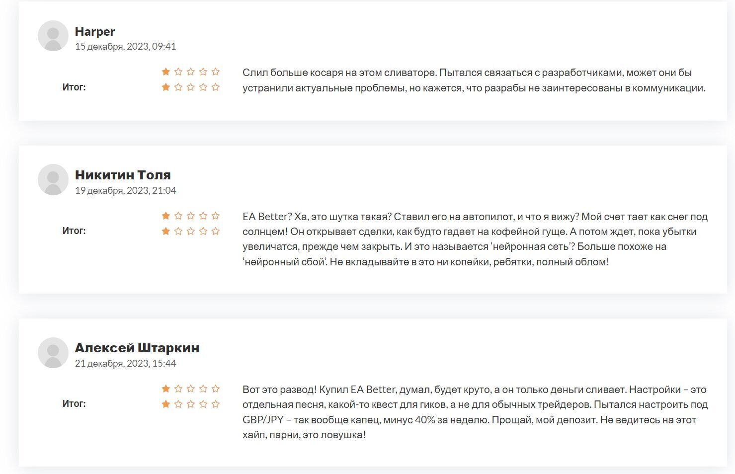 У форекс-советника ужасная репутация. Практикующие трейдеры активно критикуют разработчиков EA Better отзывы пользователей затрагивают абсолютно все аспекты работы алгоритма: от стратегии до стоимости лицензии. Инвесторы не видят смысла в использовании этого программного обеспечения.