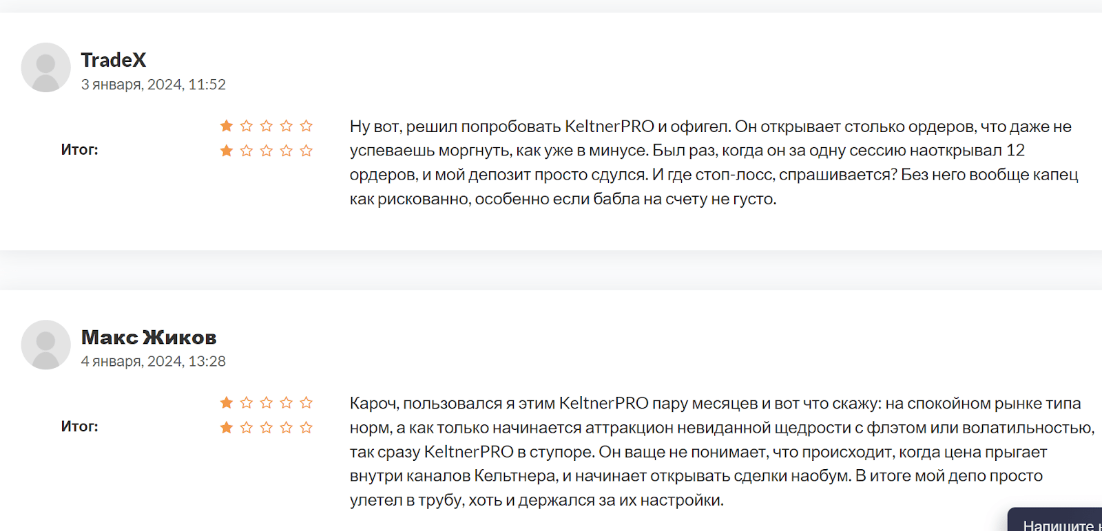 - нехватка данных о работе компании. Отсутствие достаточной информации о том, как именно работает KeltnerPRO, и недостаток данных для обоснованного вывода о его эффективности;