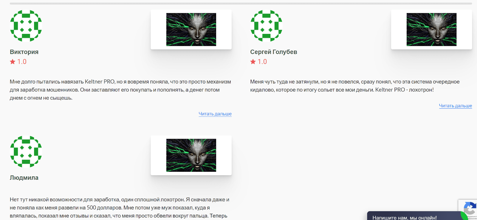 Отзывы о Keltner PRO в основном посвящены тому, как пользователи стараются вернуть свои деньги. Но, жулики отклоняют их сообщения или же игнорируют заявки на вывод денег.