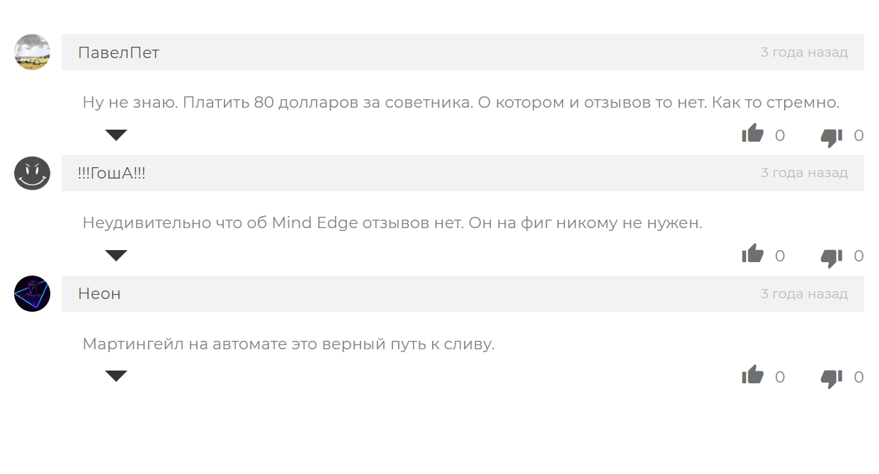 Собственно, как вы видите взаимодействие с таким продуктом как Mind Edge приведет исключительно к потерям.
