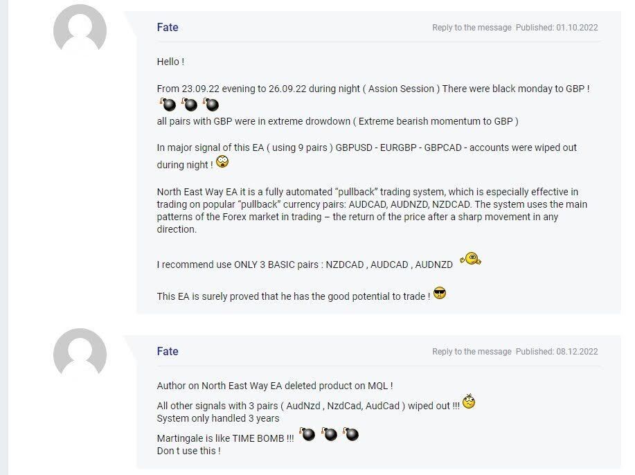 Многие повелись на обзорные статьи, но в реальности просто потеряли деньги. Есть истории о том, как трейдеры делятся собственным опытом. Якобы с North East Way EA нужно использовать только с 3 парами валют, и тогда можно рассчитывать на положительный исход.