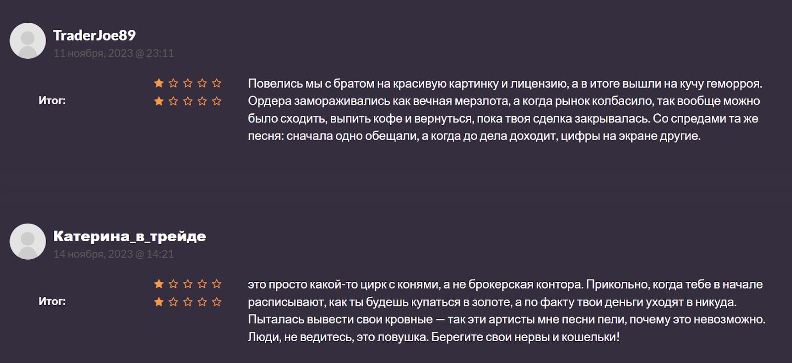 - Некоторые клиенты жалуются на качество работы платформы, высокие спреды и проблемы с выводом средств, что поднимает вопросы о надежности и честности компании.