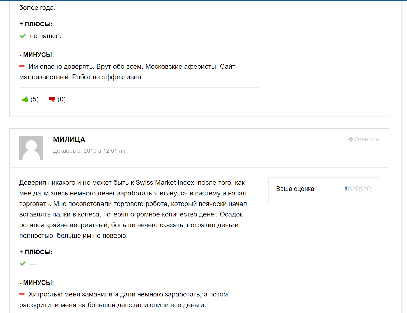 - многочисленные негативные отзывы от клиентов, которые столкнулись с проблемами в работе с Swiss Markets;