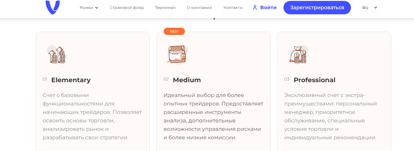 Далее, в личном кабинете VirturVia вы сможете выбрать для себя подходящий торговый счет. Минимальный депозит здесь довольно низкий — от 150 долларов. Однако за эту сумму вы не получите почти никаких услуг. Поэтому консультанты стараются убедить вас вложить от тысячи долларов, чтобы обеспечить себе качественную аналитику и помощь специалистов.
